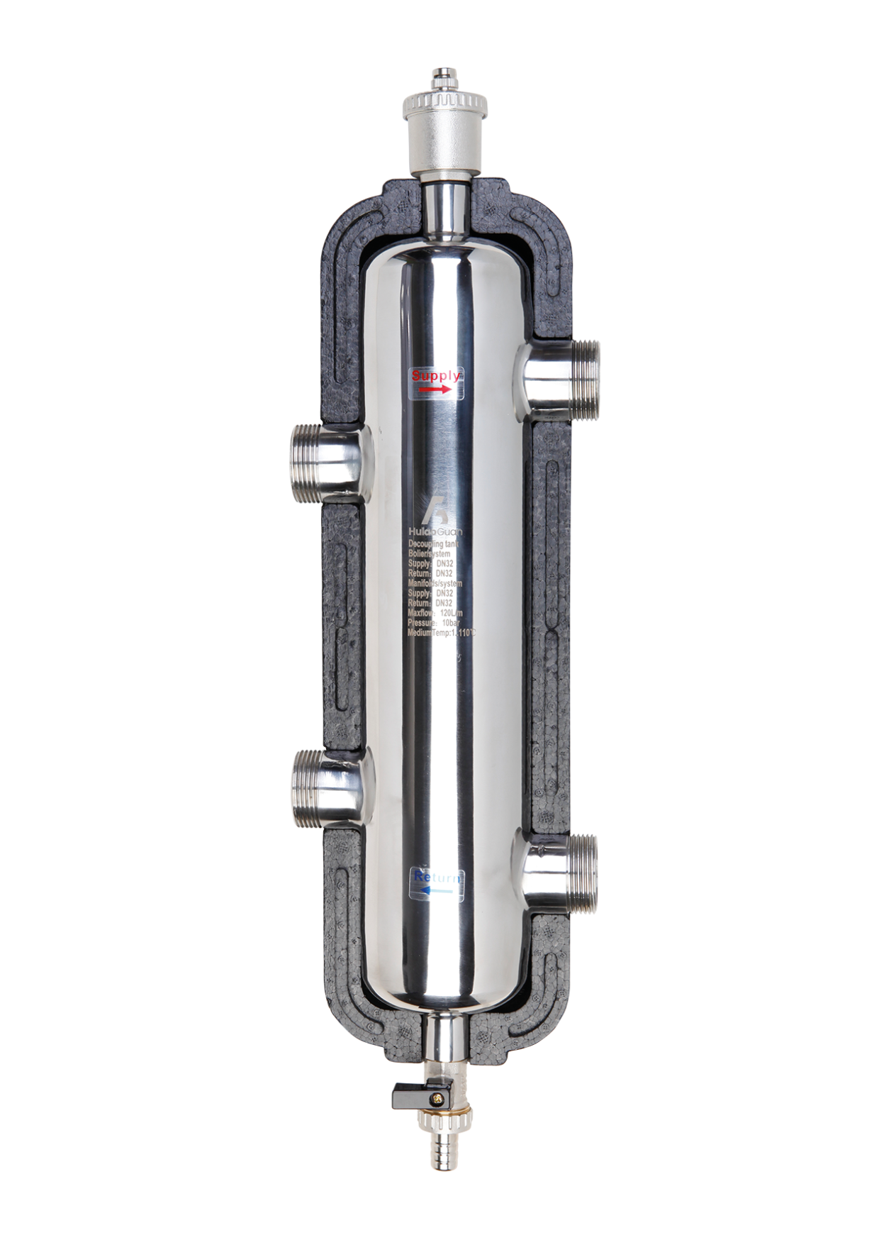 Hydraulický vyrovnávač dynamických tlaků HVDT je určen pro hydraulické oddělení zdroje tepla od topné soustavy. Jeho instalací se eliminují přebytky dynamických tlaků čerpadel a upraví se hydraulické poměry v soustavě. HVDT je ocelový svařenec, opatřený jedním základním a jedním vrchním syntetickým nátěrem. Jako příslušenství lze dodat originální snímatelnou PUR tepelnou izolaci s ALU kašírovaným povrchem.